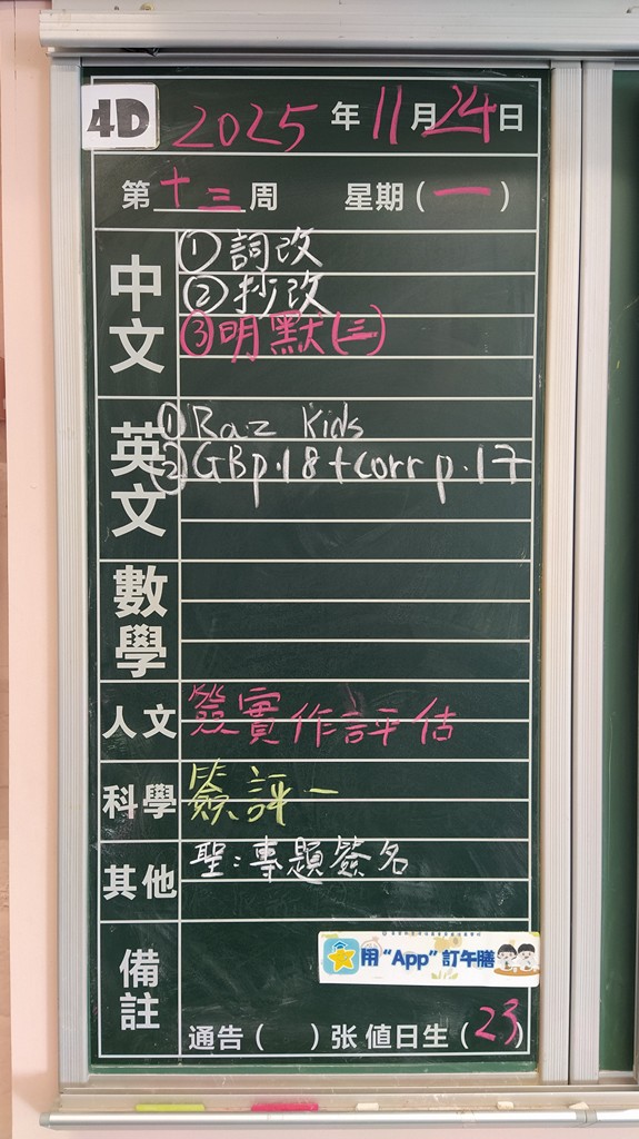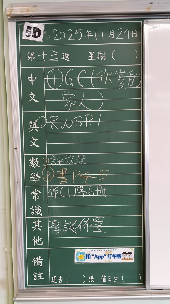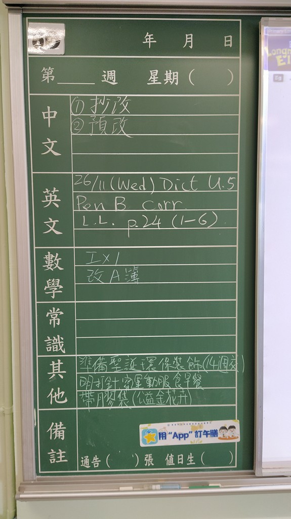 * 注意 :網上家課日誌只供參考,家課內容以上課時老師所述為準,同學應養成即時填寫手冊的習慣 *