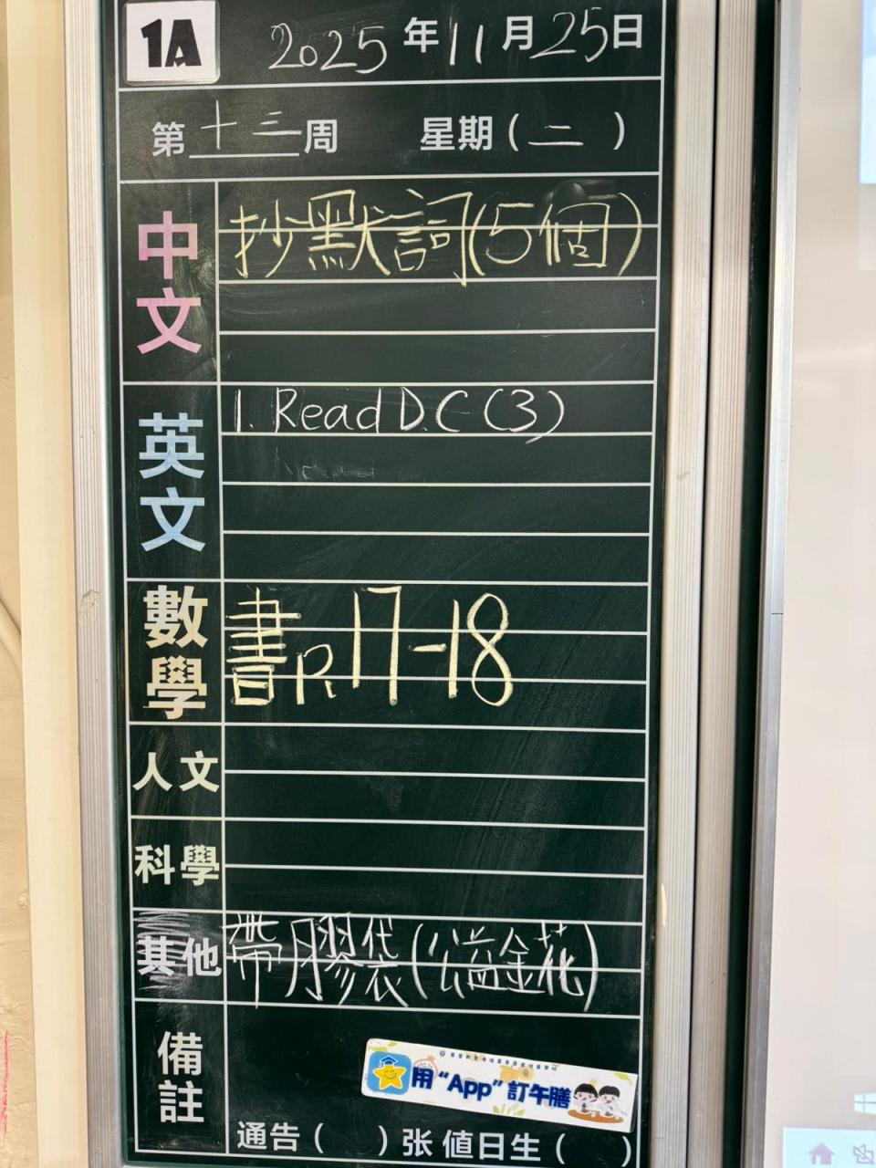 一至六年級家課