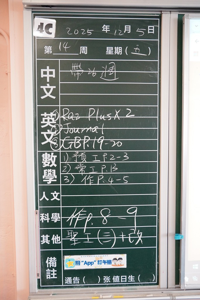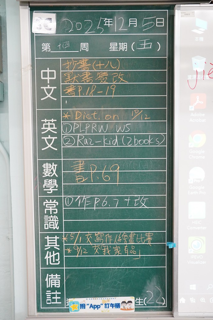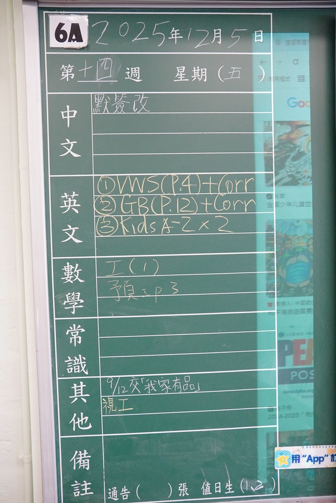 * 注意 :網上家課日誌只供參考,家課內容以上課時老師所述為準,同學應養成即時填寫手冊的習慣 *