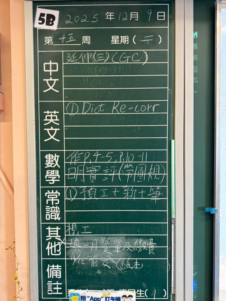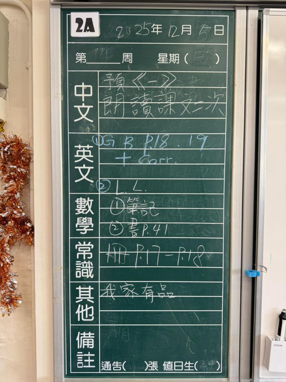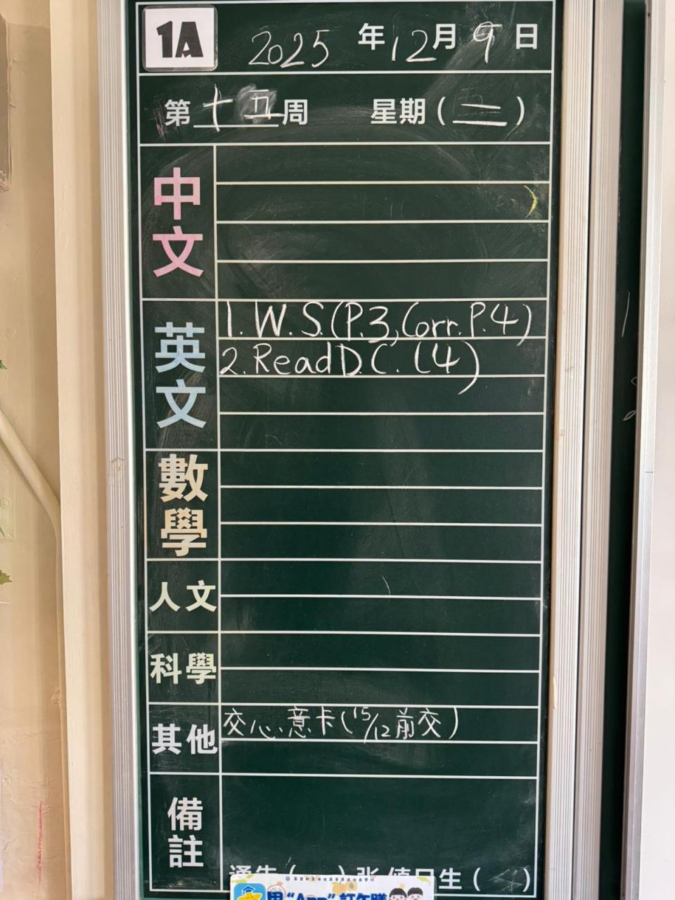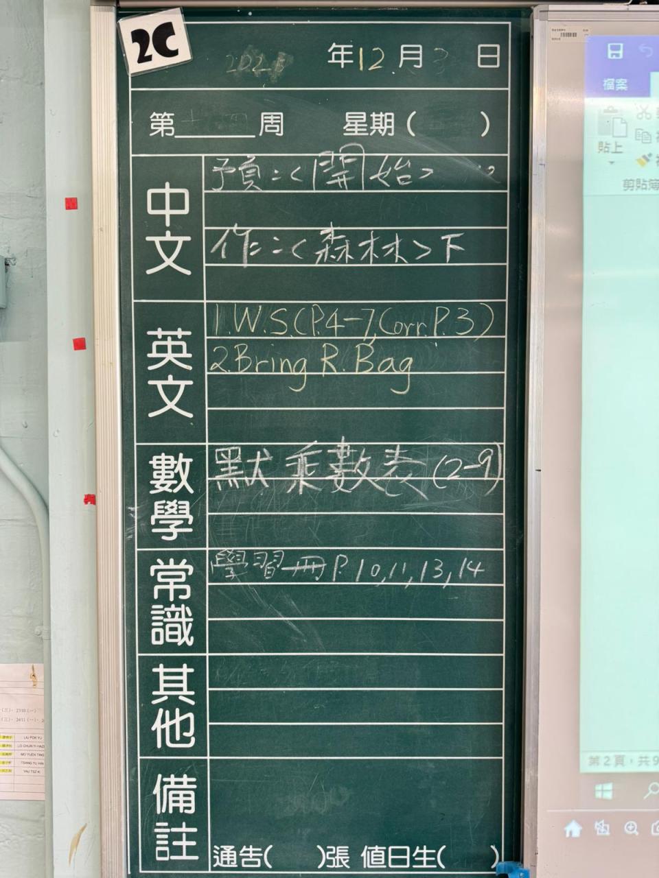 * 注意 :網上家課日誌只供參考,家課內容以上課時老師所述為準,同學應養成即時填寫手冊的習慣 *