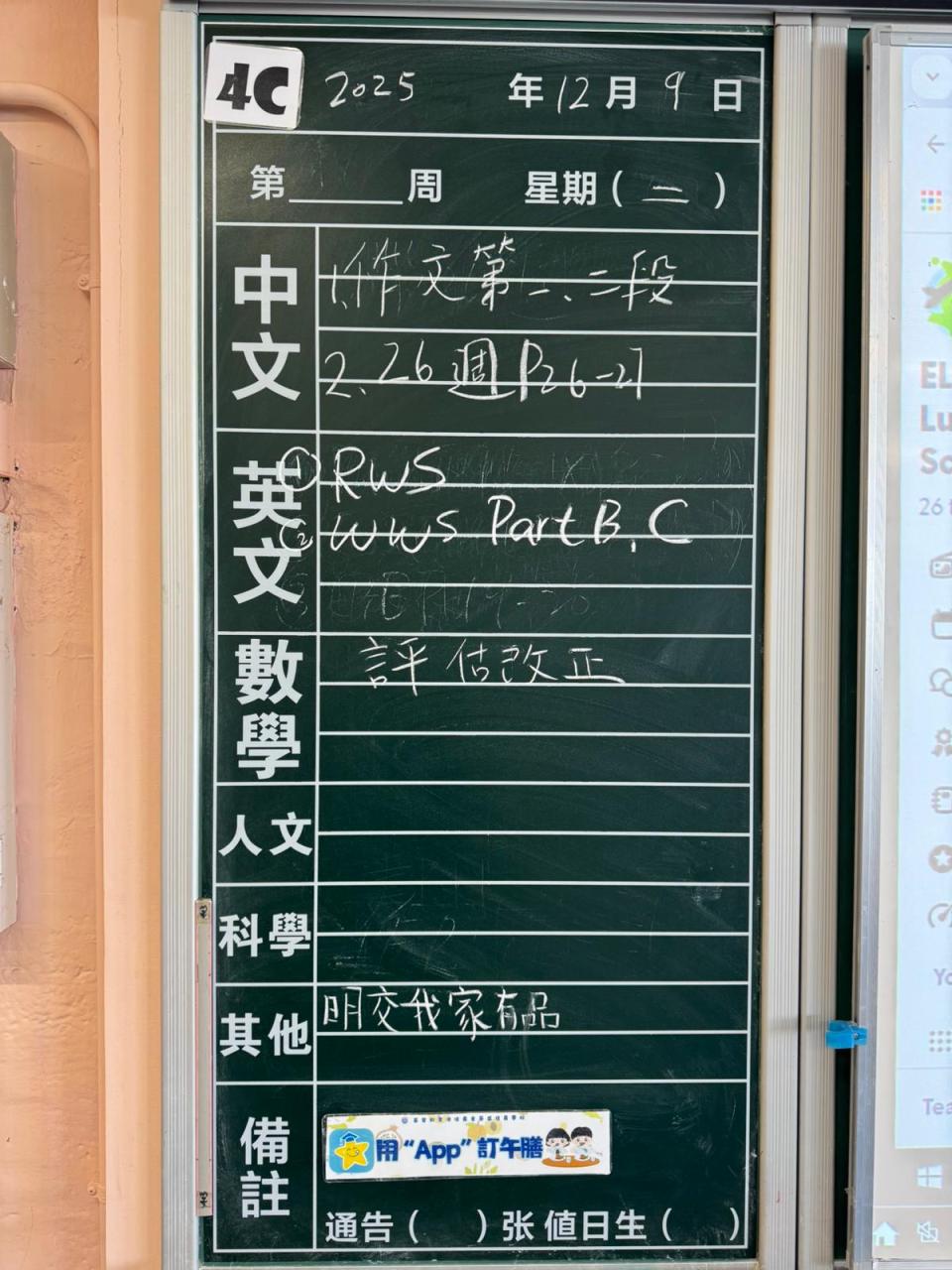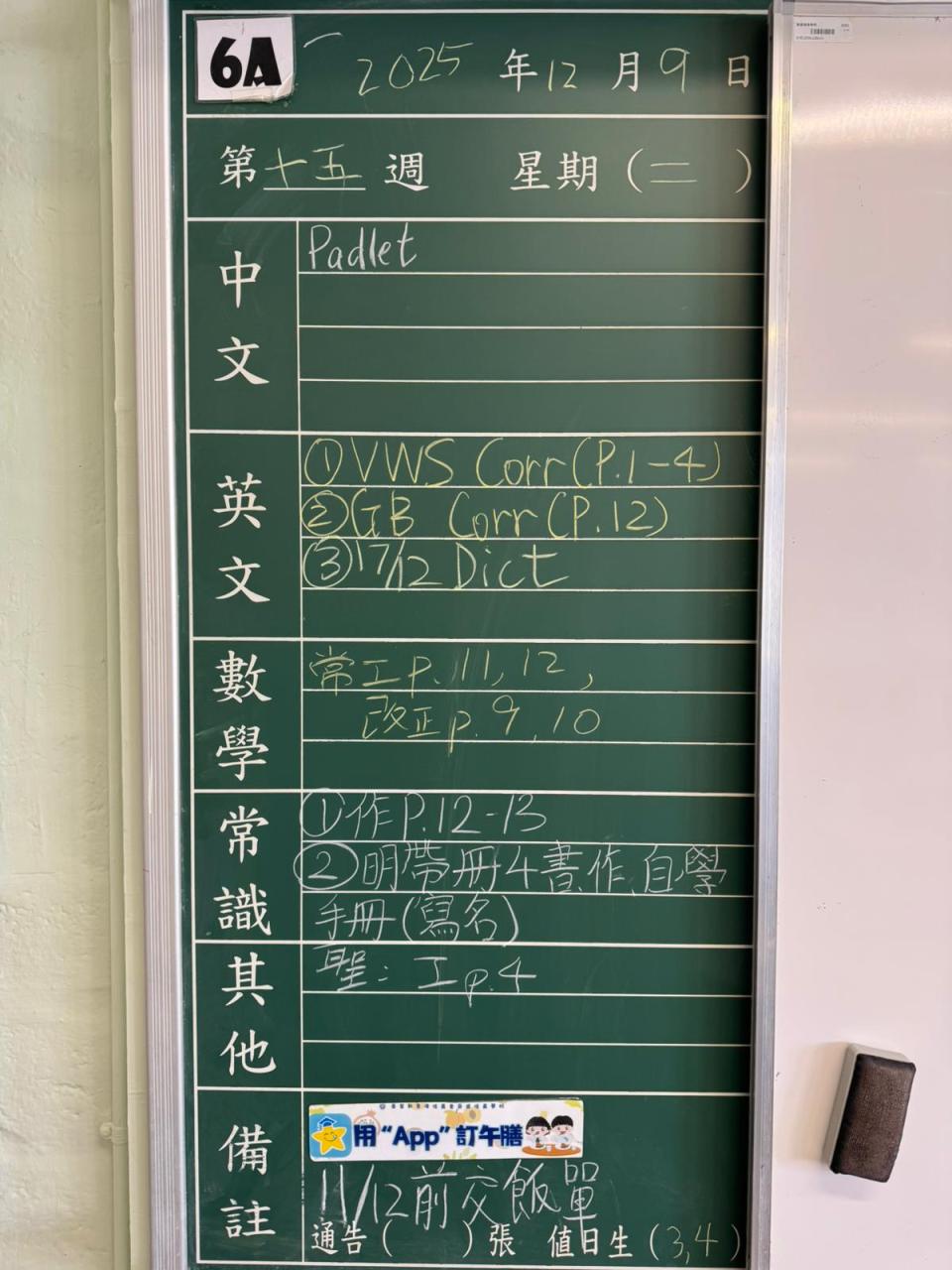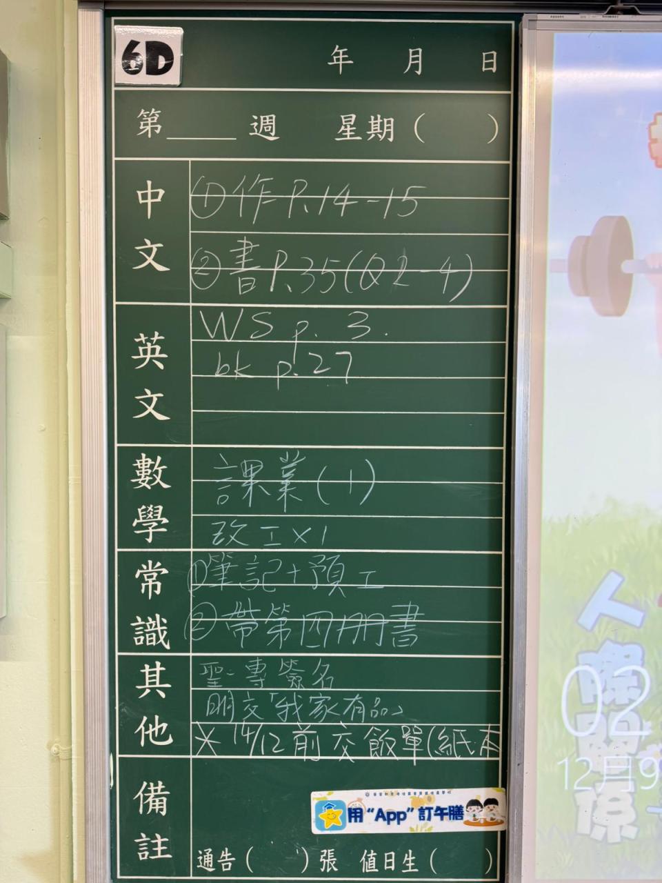 一至六年級家課