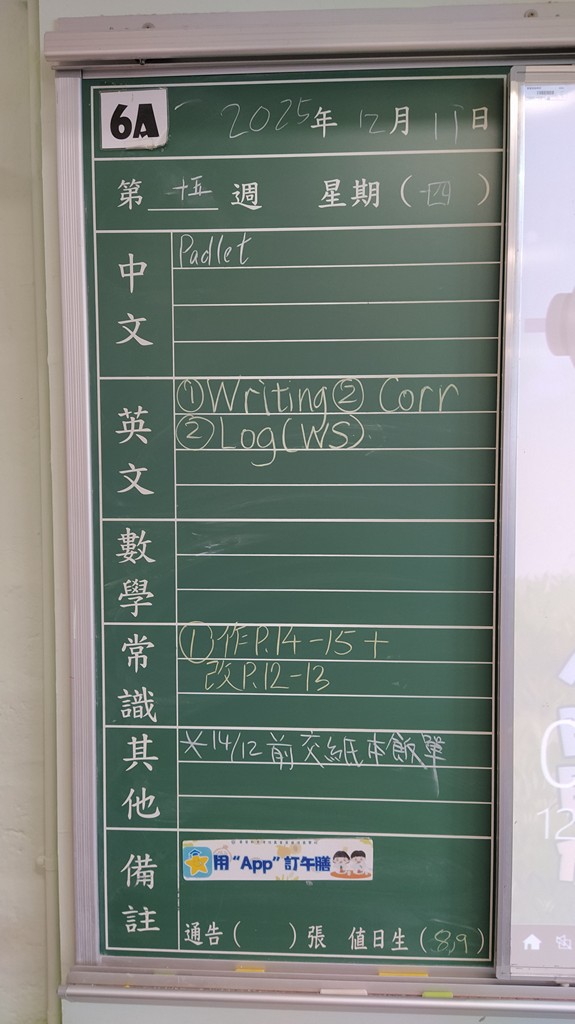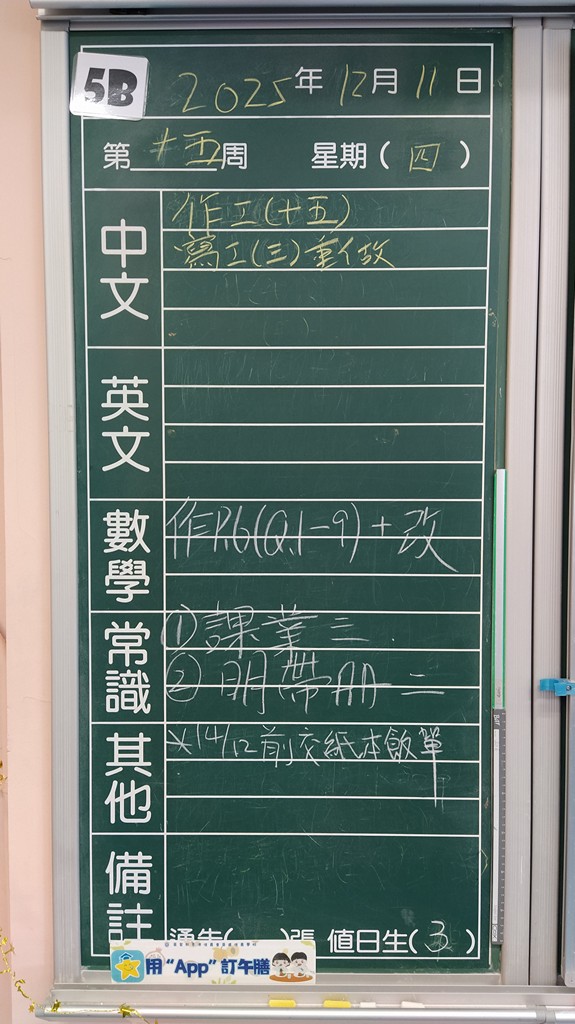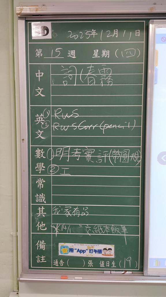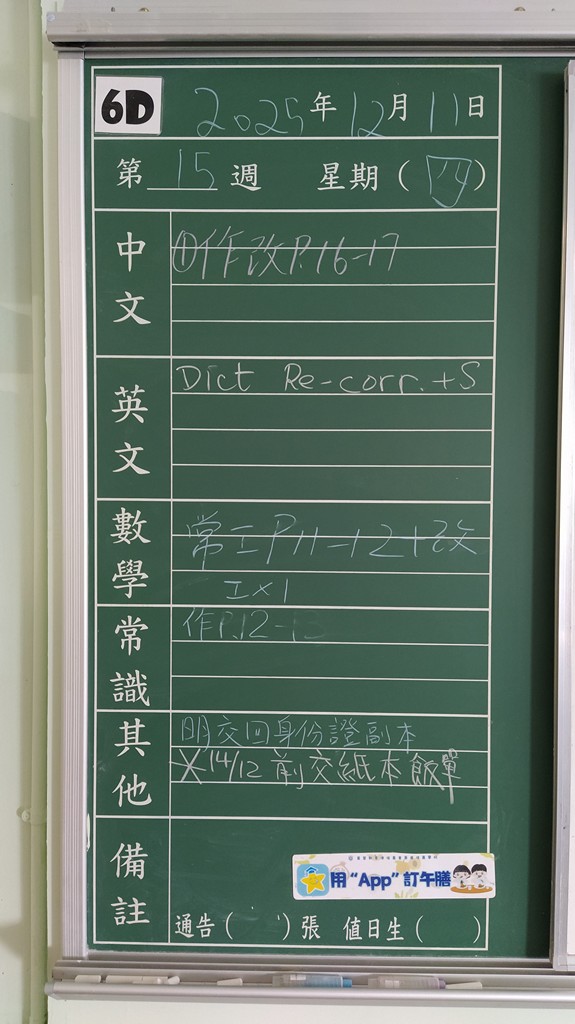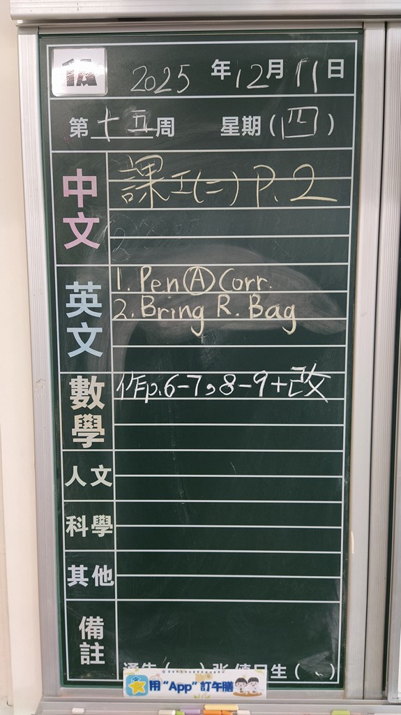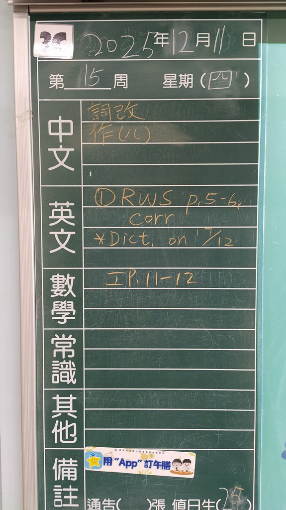* 注意 :網上家課日誌只供參考,家課內容以上課時老師所述為準,同學應養成即時填寫手冊的習慣 *
