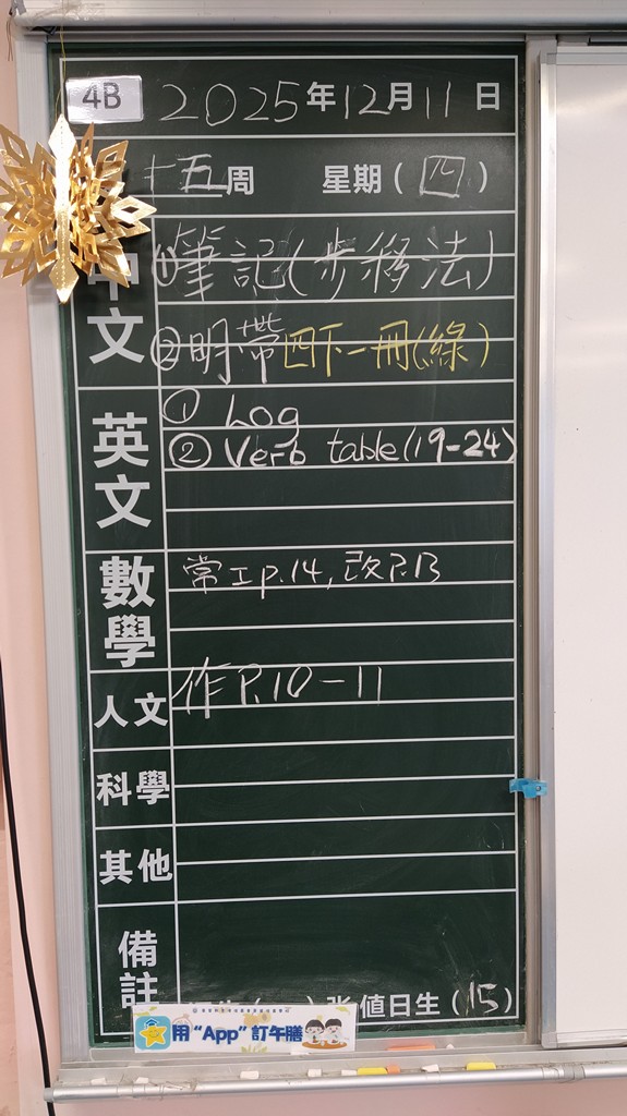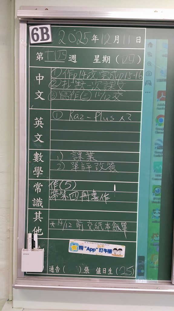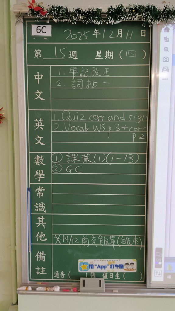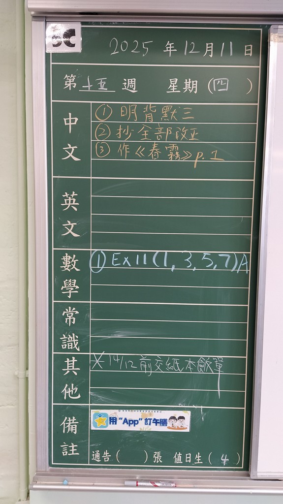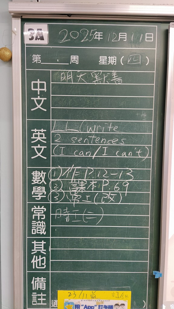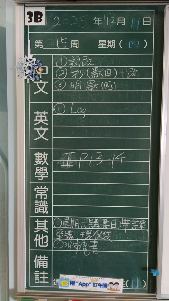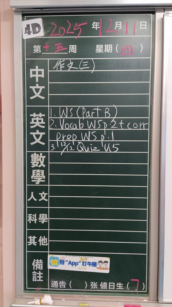 * 注意 :網上家課日誌只供參考,家課內容以上課時老師所述為準,同學應養成即時填寫手冊的習慣 *