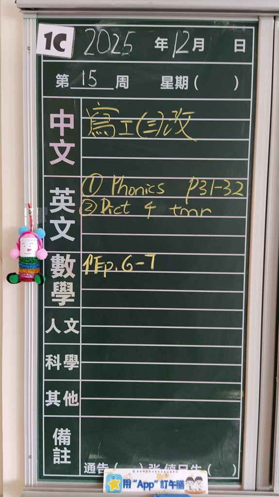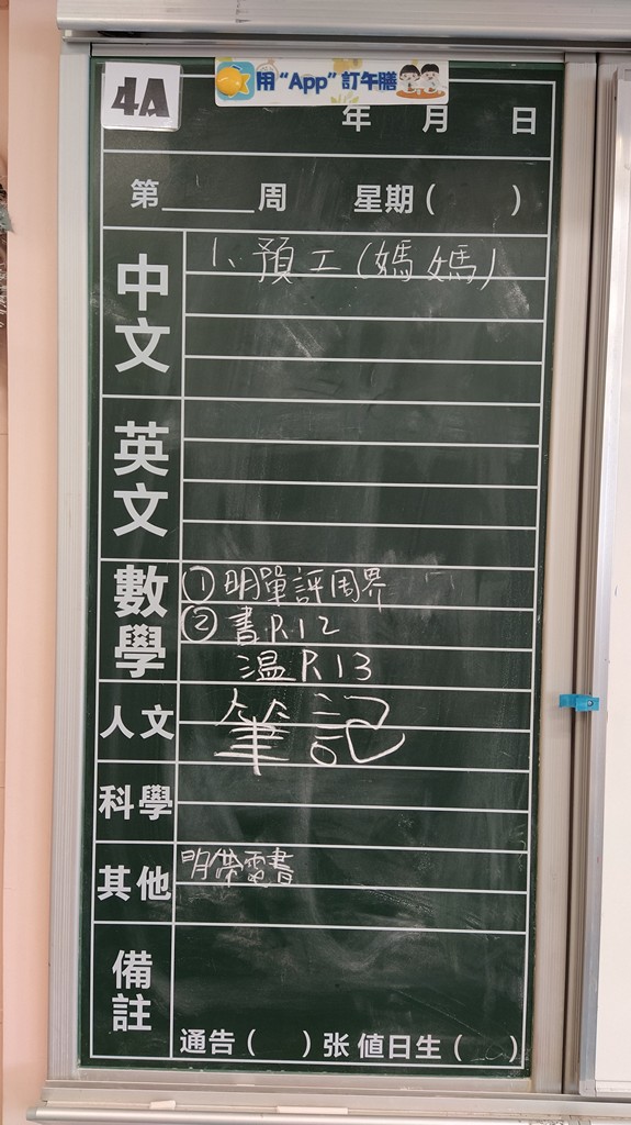 一至六年級家課