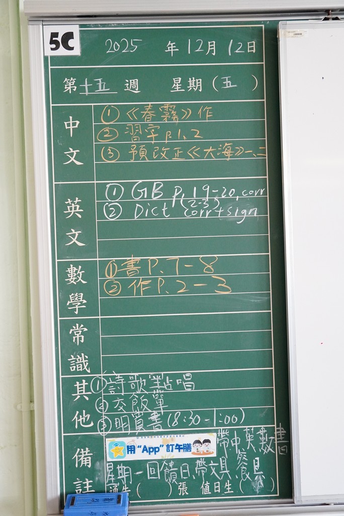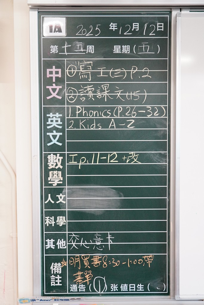 一至六年級家課