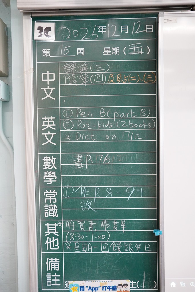* 注意 :網上家課日誌只供參考,家課內容以上課時老師所述為準,同學應養成即時填寫手冊的習慣 *
