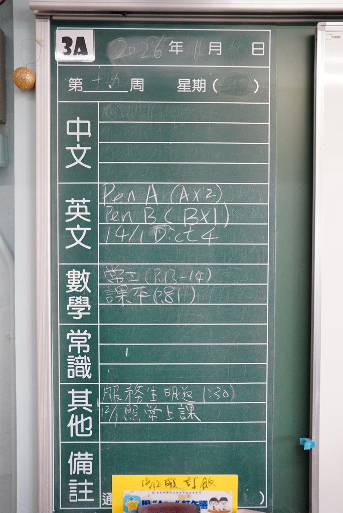 * 注意 :網上家課日誌只供參考,家課內容以上課時老師所述為準,同學應養成即時填寫手冊的習慣 *