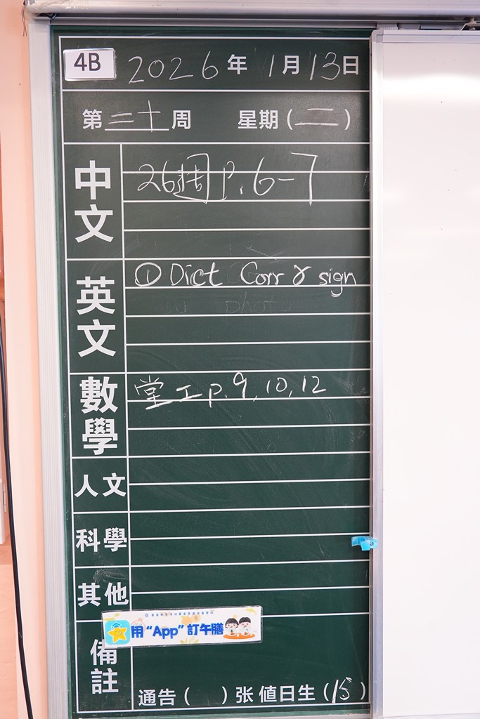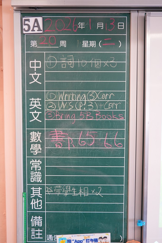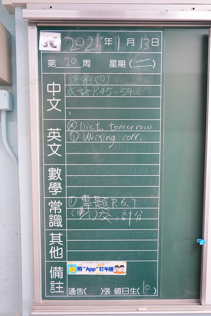* 注意 :網上家課日誌只供參考,家課內容以上課時老師所述為準,同學應養成即時填寫手冊的習慣 *