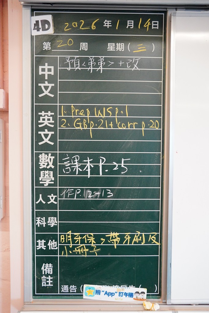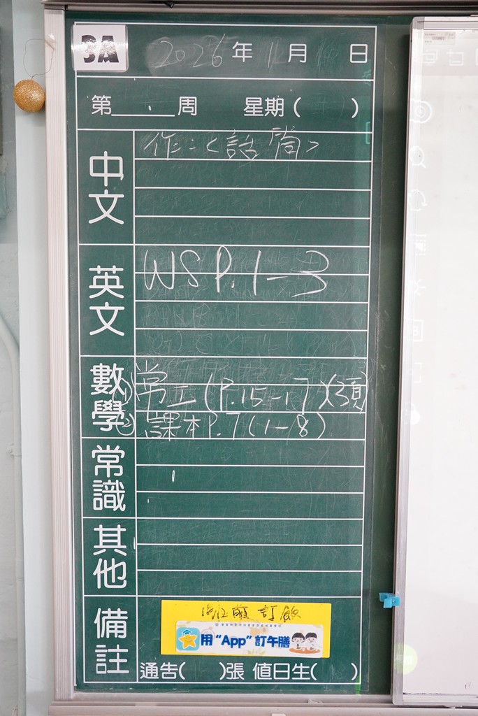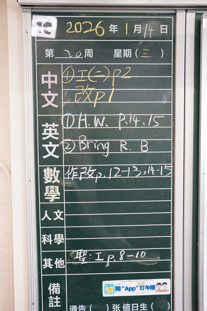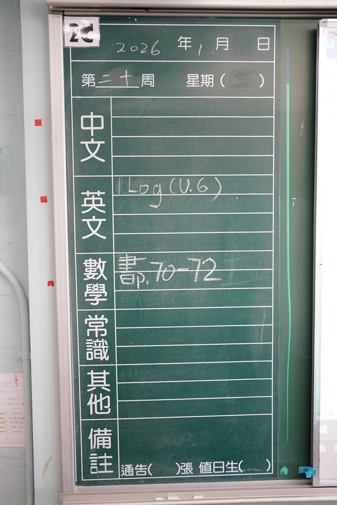 * 注意 :網上家課日誌只供參考,家課內容以上課時老師所述為準,同學應養成即時填寫手冊的習慣 *