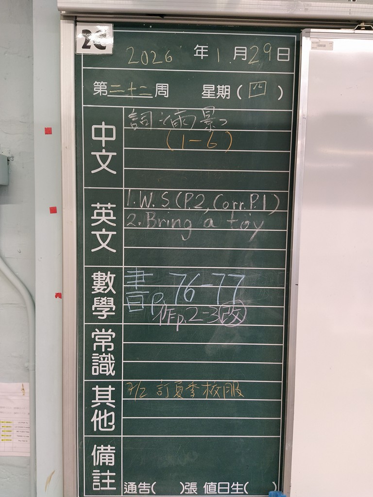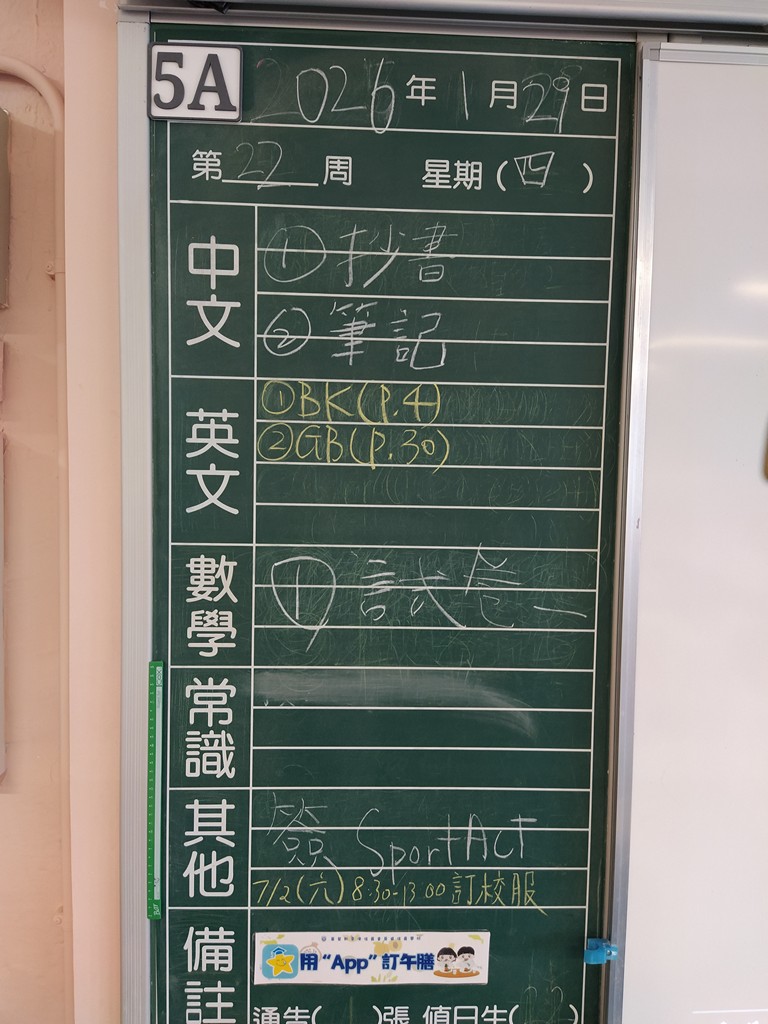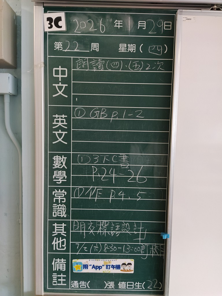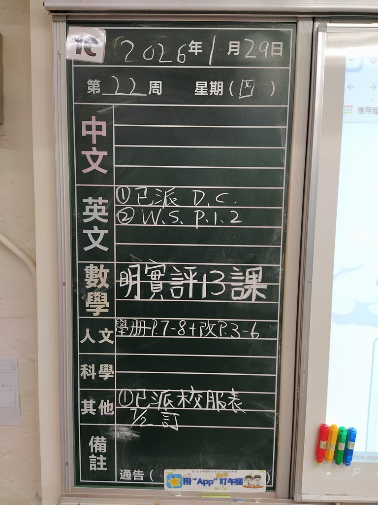 * 注意 :網上家課日誌只供參考,家課內容以上課時老師所述為準,同學應養成即時填寫手冊的習慣 *