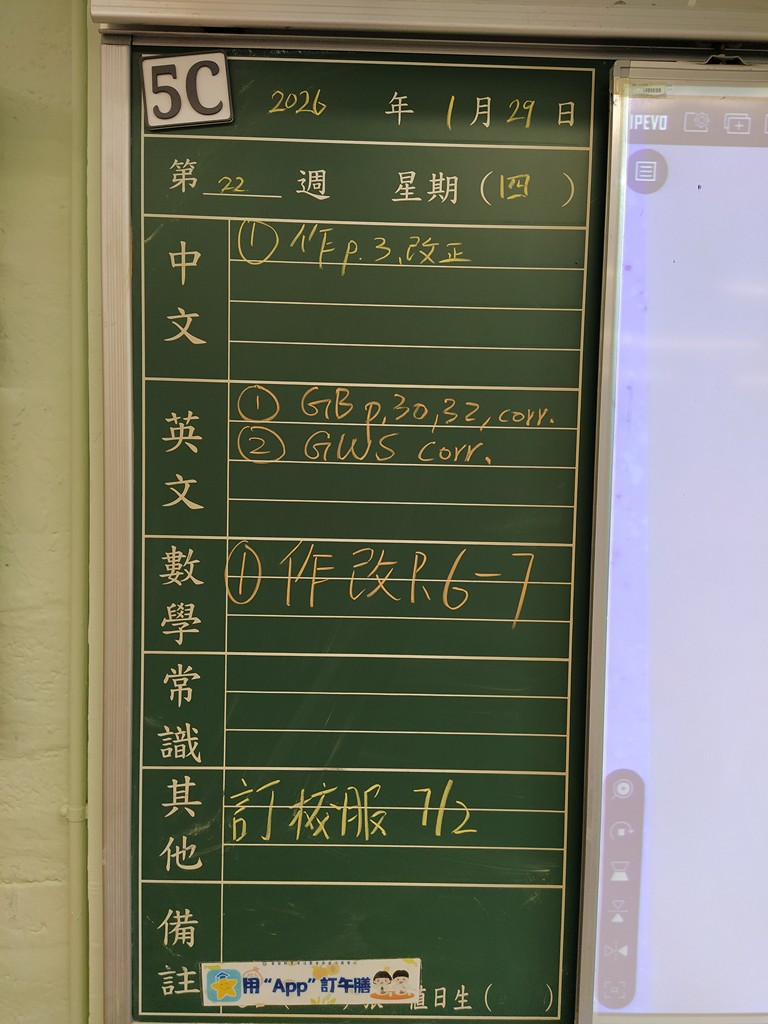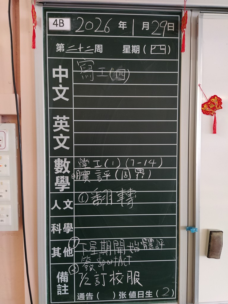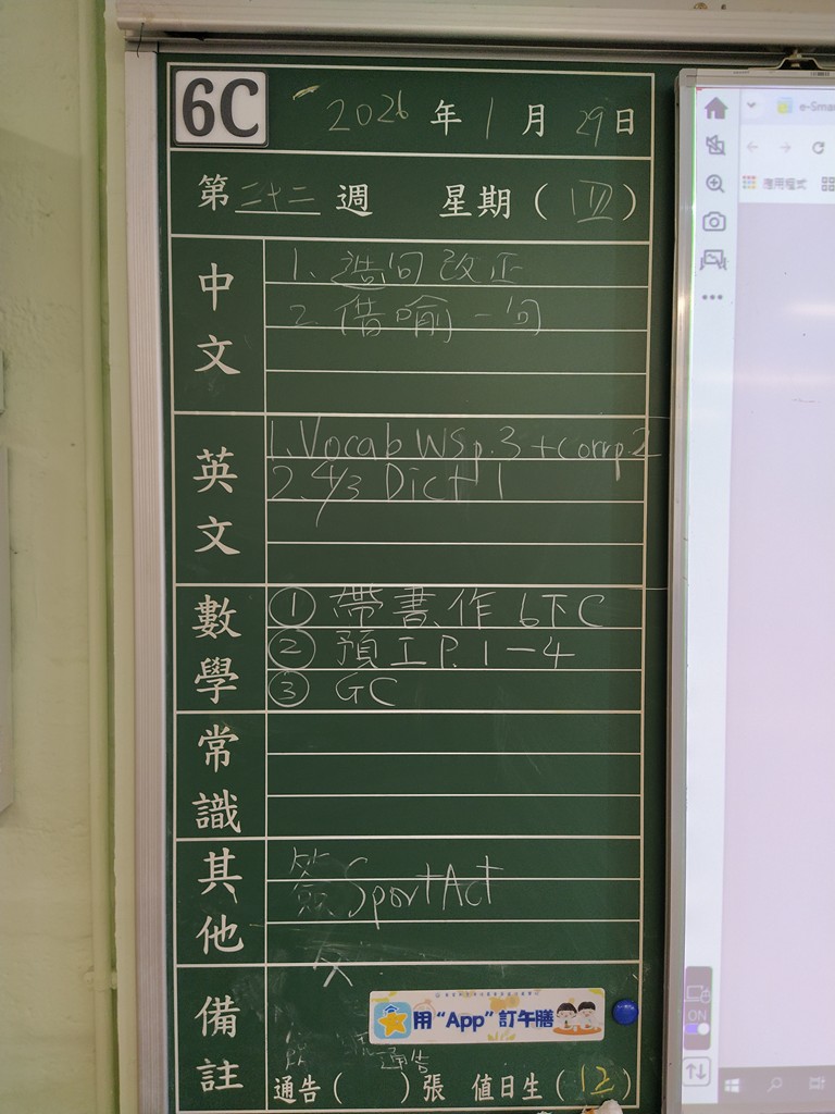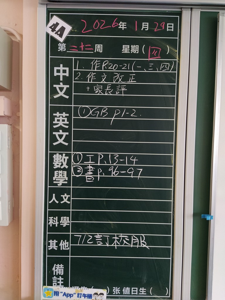 * 注意 :網上家課日誌只供參考,家課內容以上課時老師所述為準,同學應養成即時填寫手冊的習慣 *
