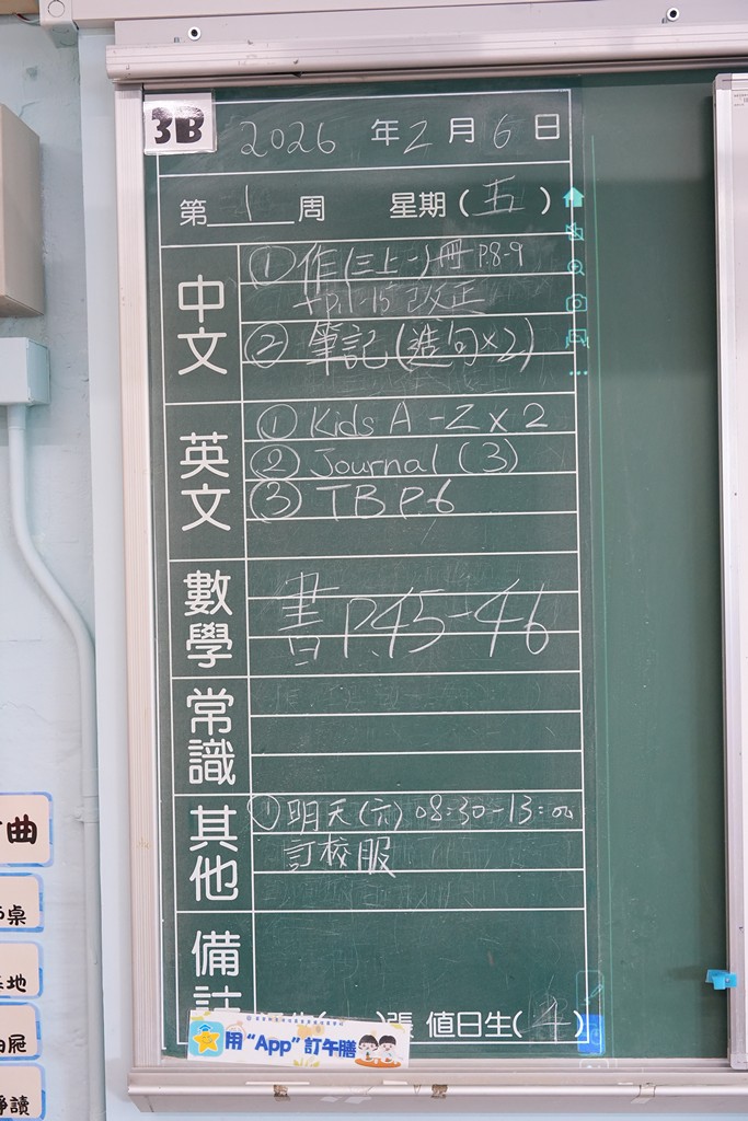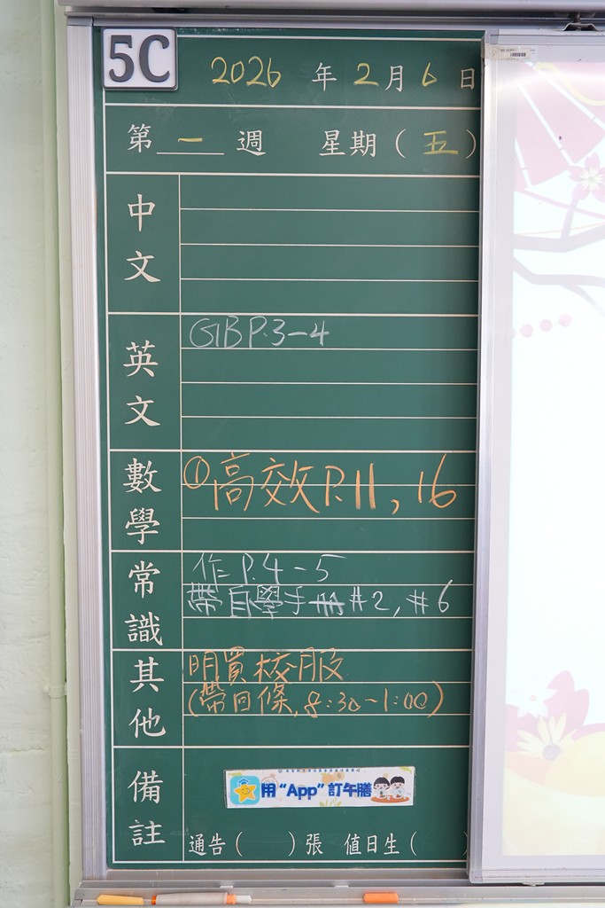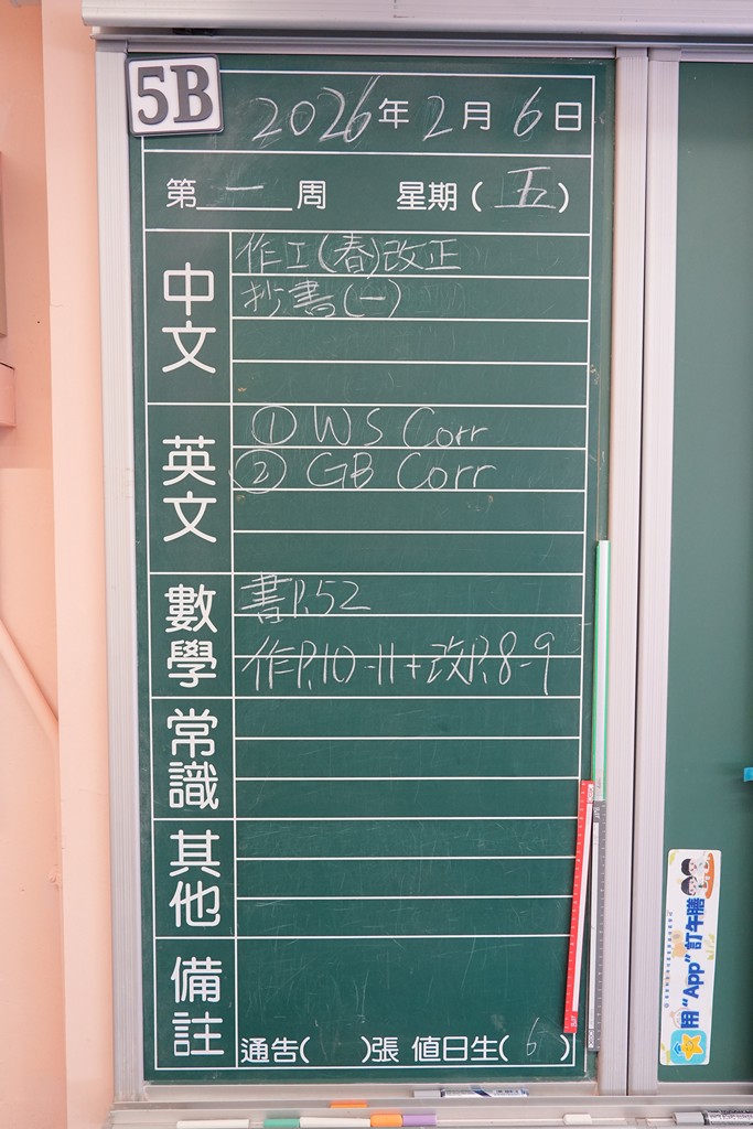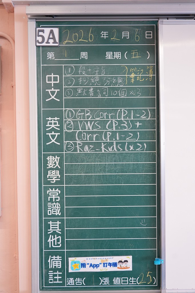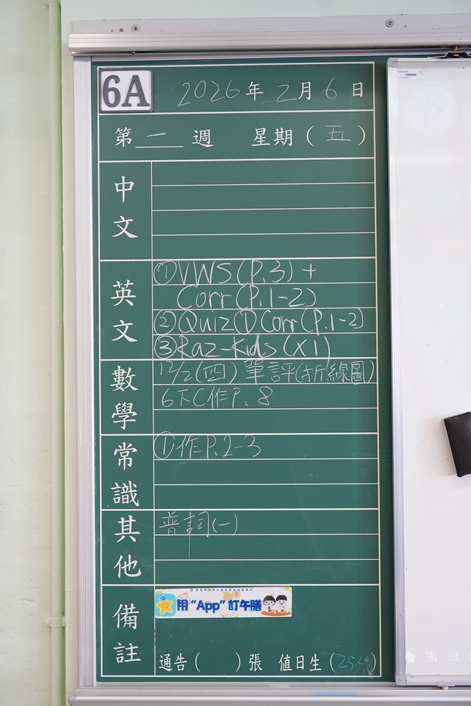 一至六年級家課