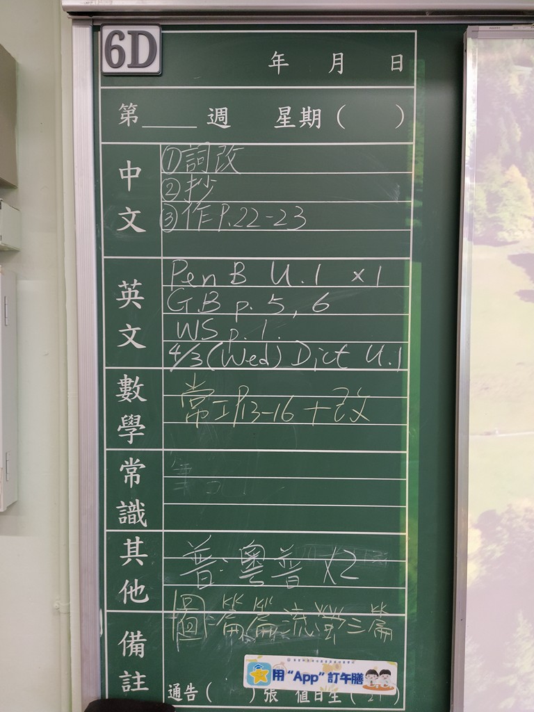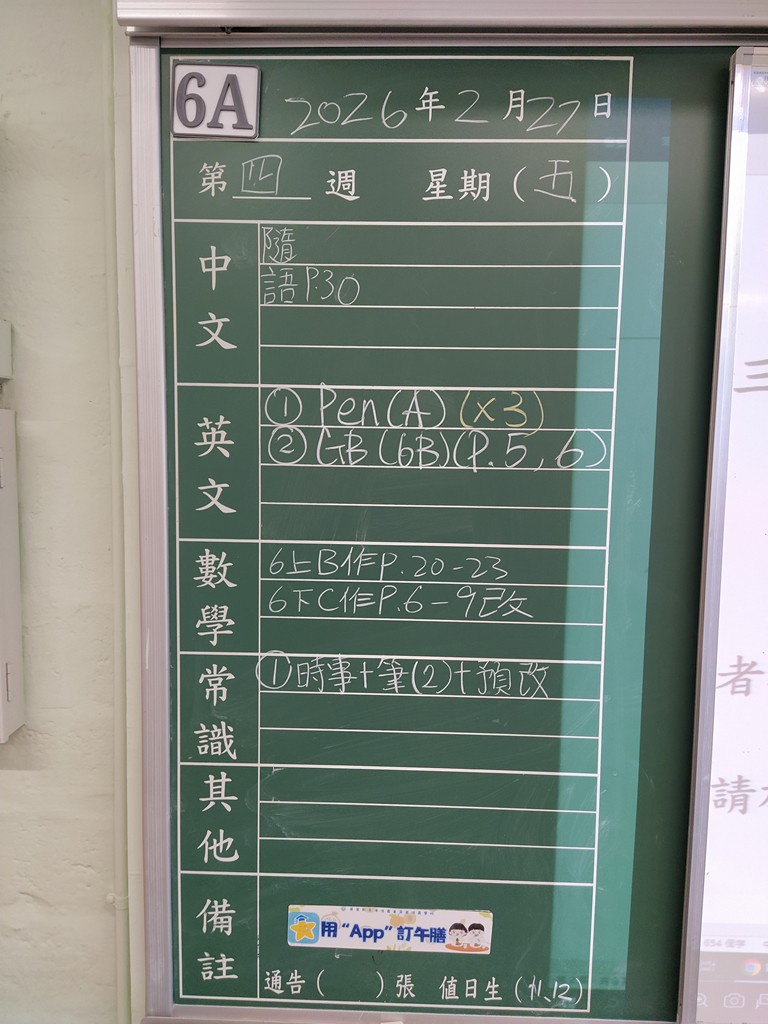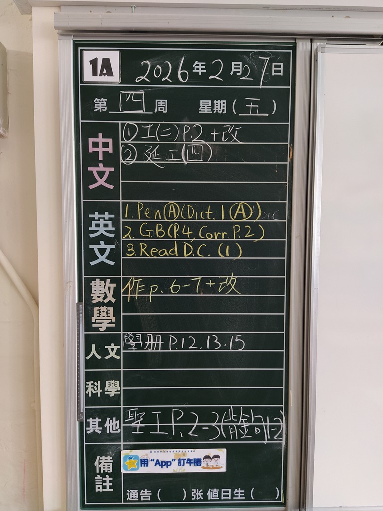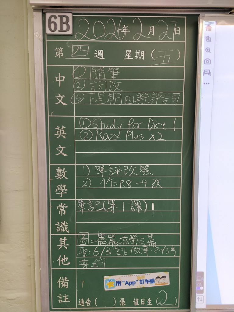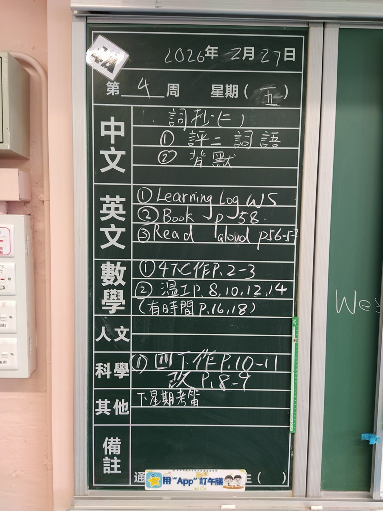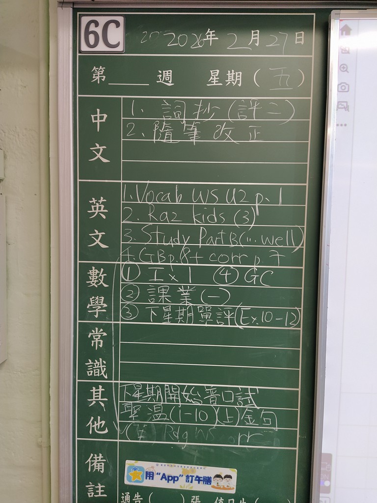 一至六年級家課