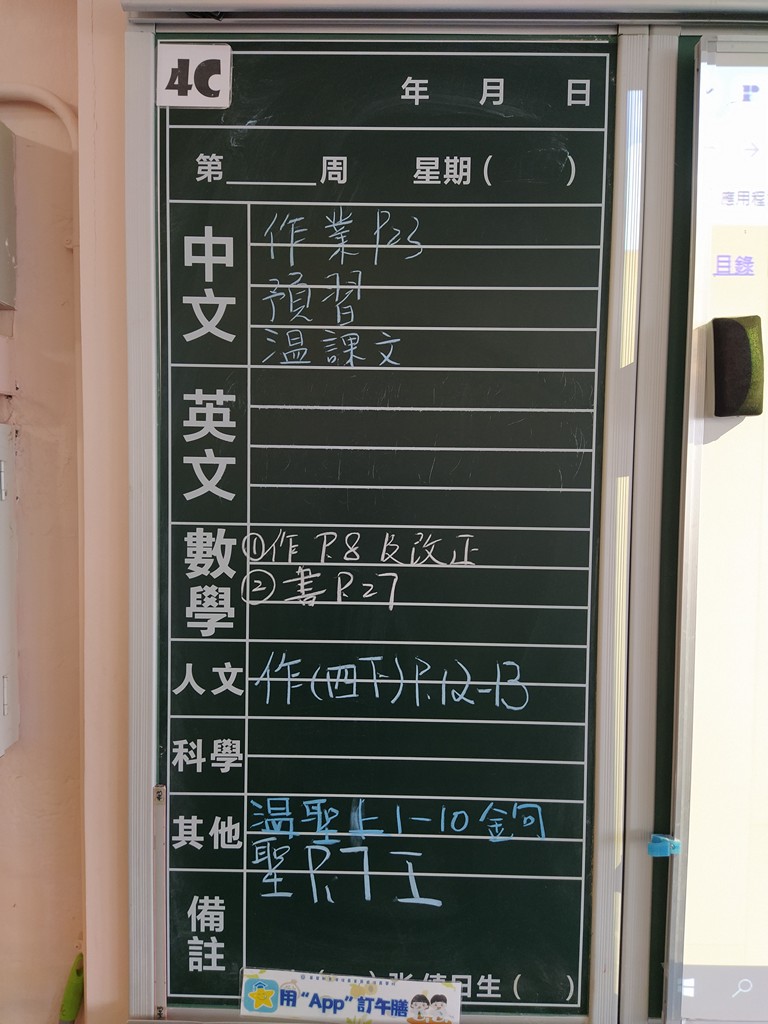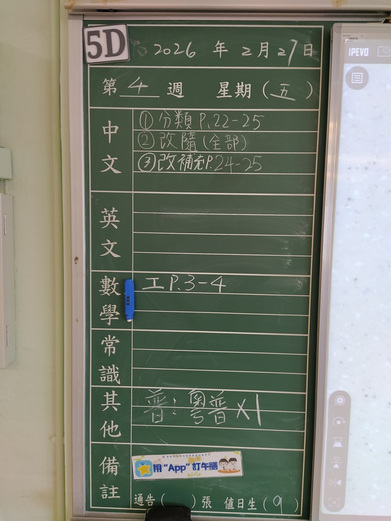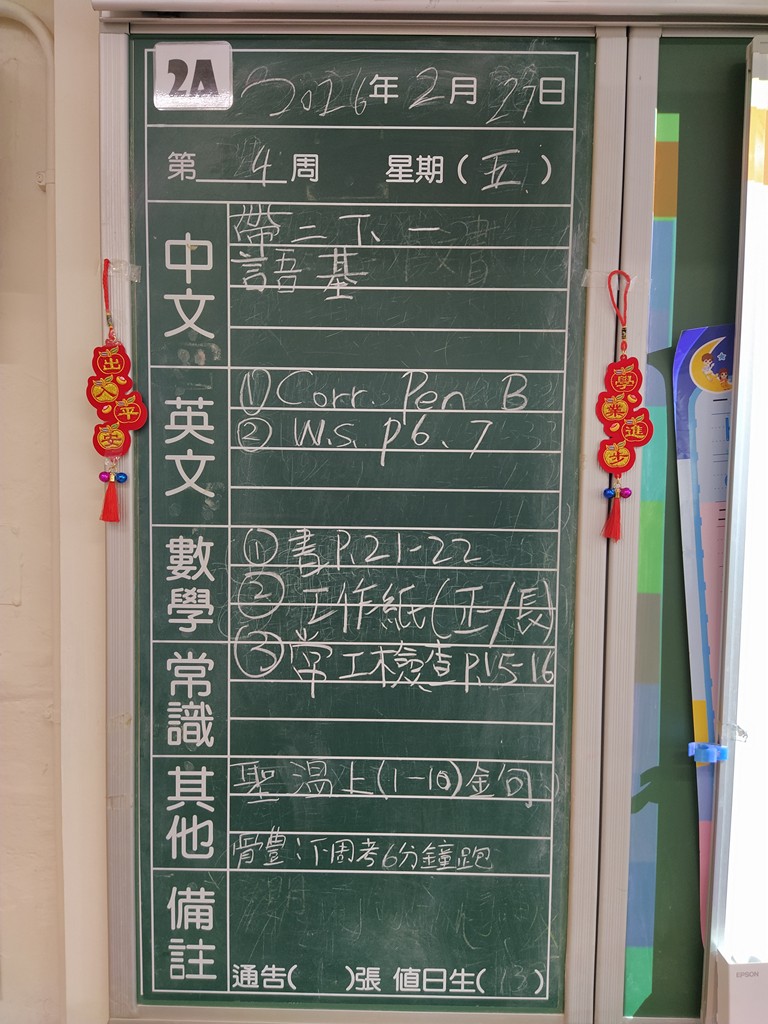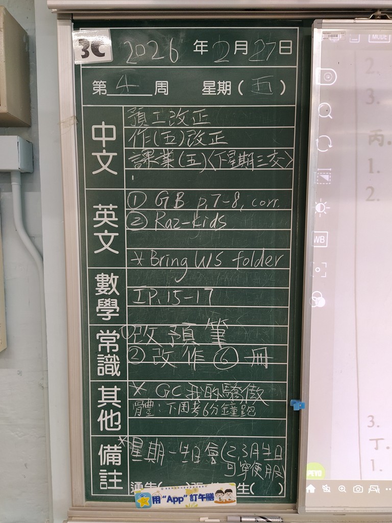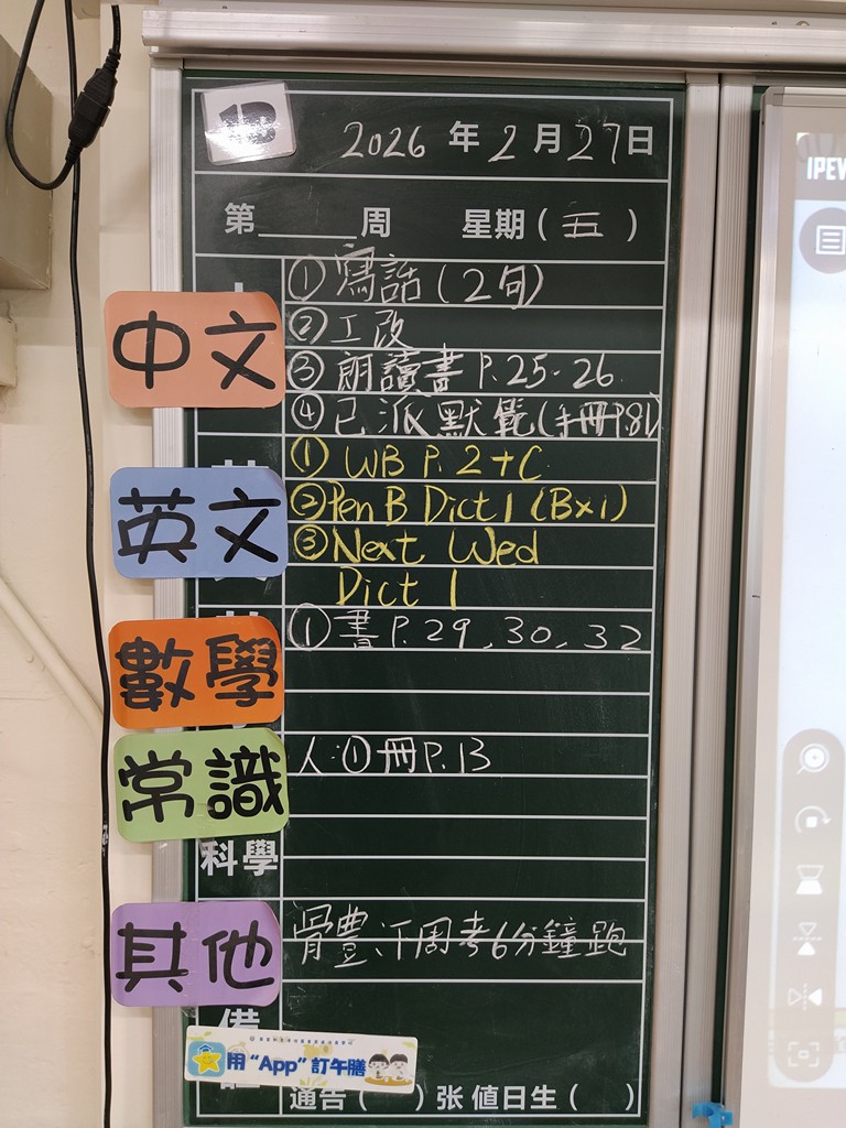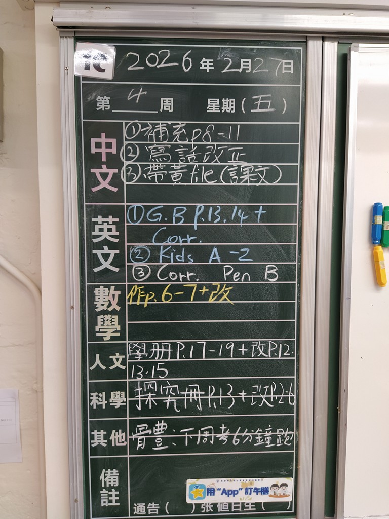 * 注意 :網上家課日誌只供參考,家課內容以上課時老師所述為準,同學應養成即時填寫手冊的習慣 *
