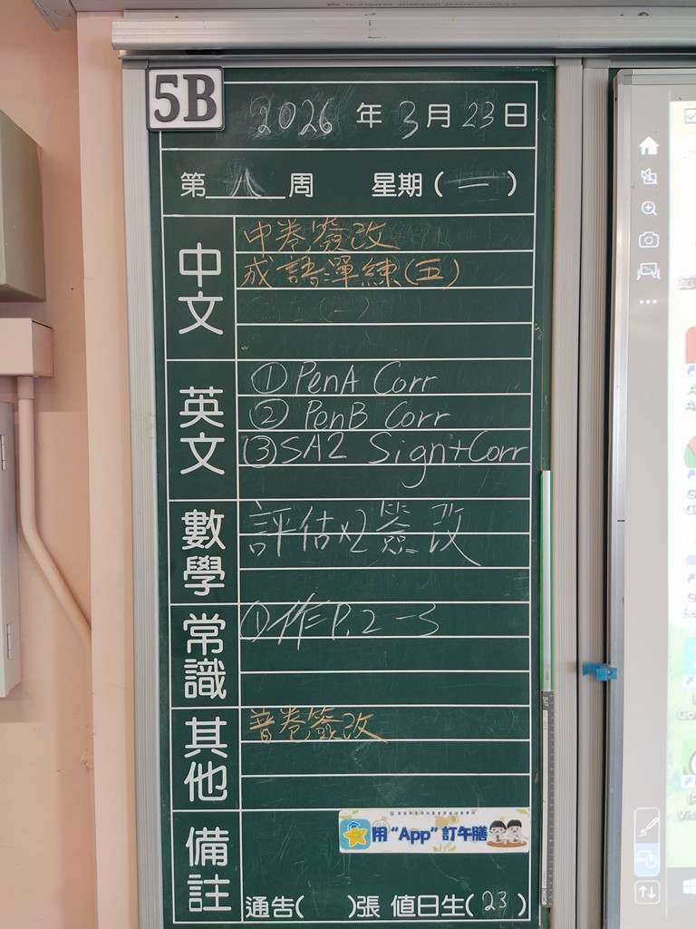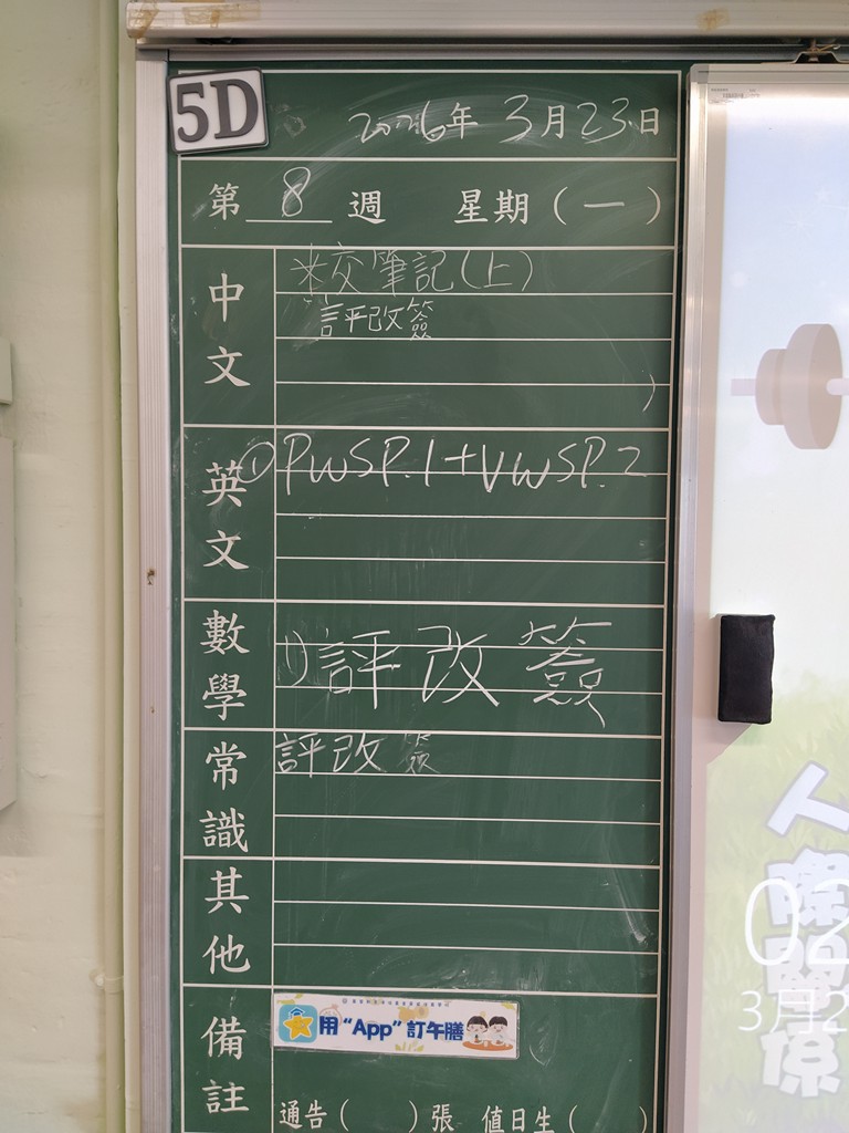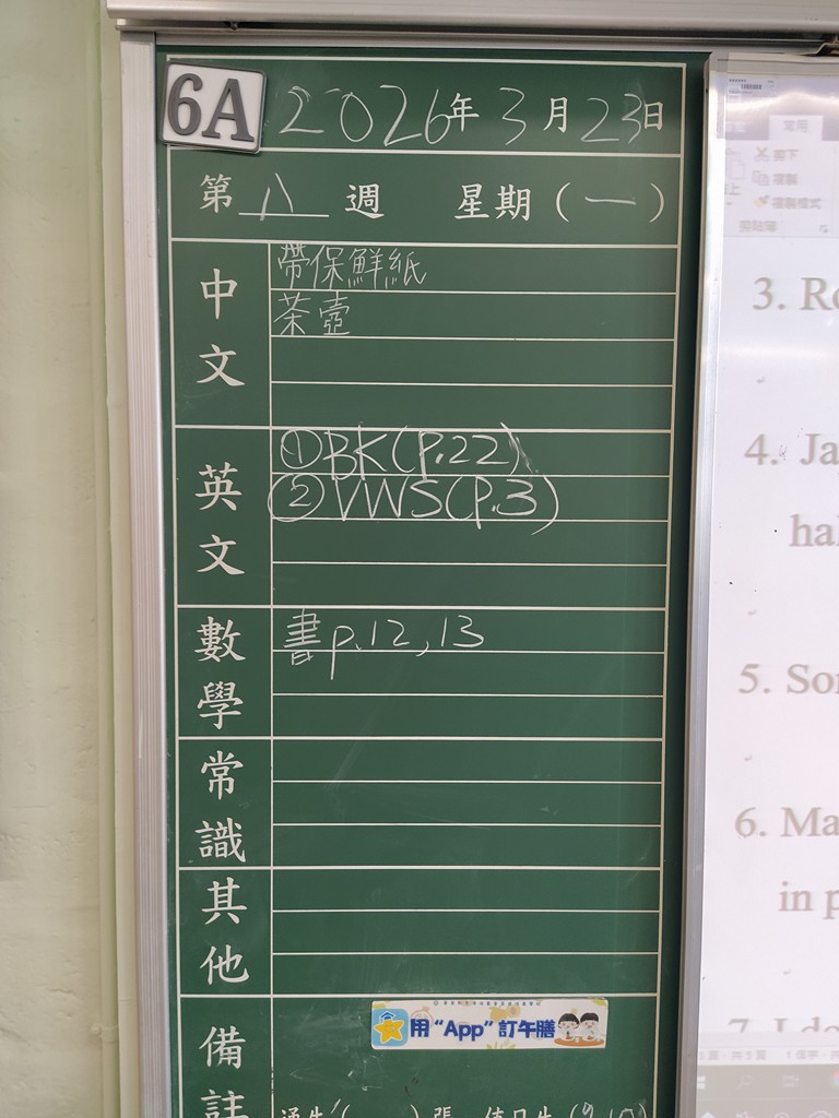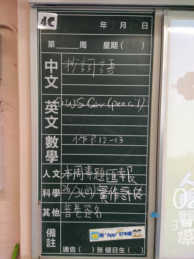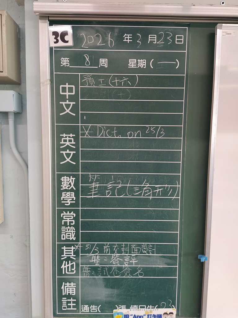 * 注意 :網上家課日誌只供參考,家課內容以上課時老師所述為準,同學應養成即時填寫手冊的習慣 *