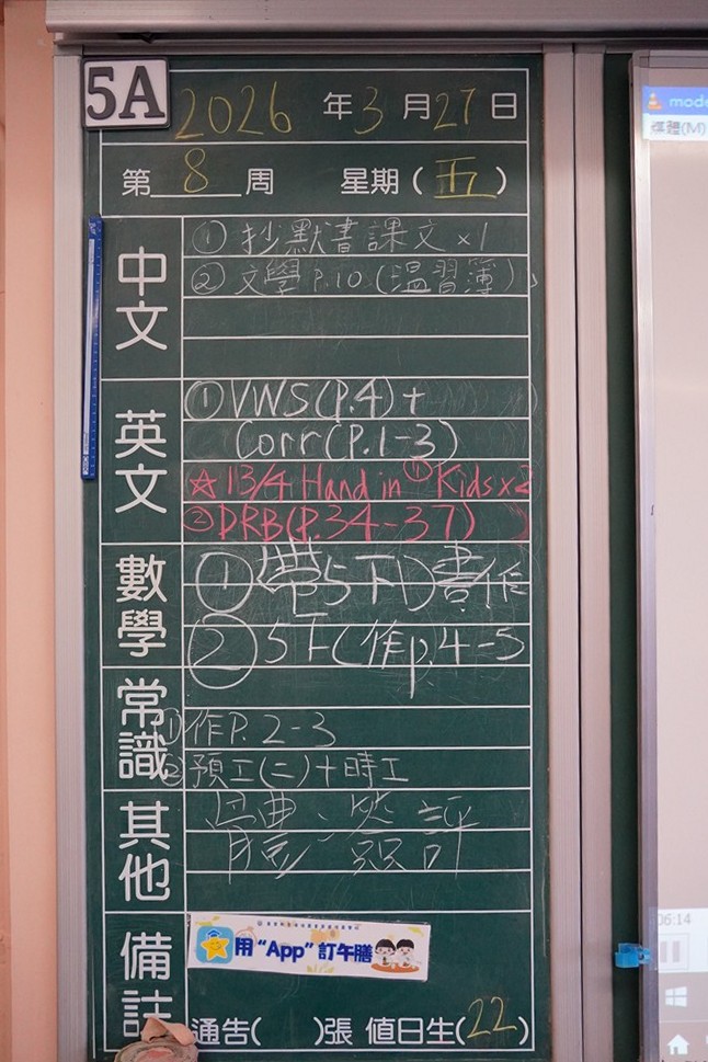 * 注意 :網上家課日誌只供參考,家課內容以上課時老師所述為準,同學應養成即時填寫手冊的習慣 *
