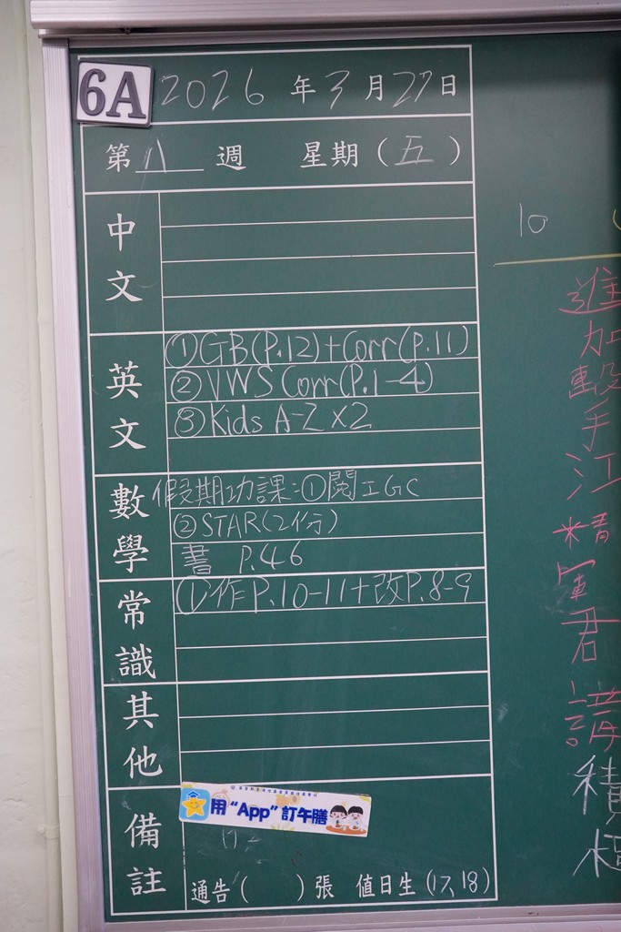 一至六年級家課